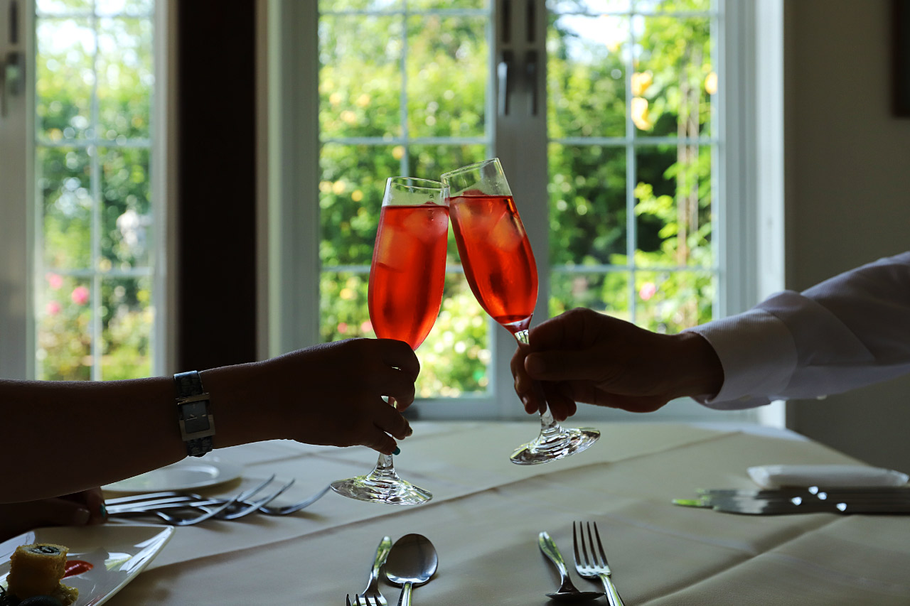 お料理の美味しさはもちろんのこと、こんなに近場で非日常感を満喫できるなんて…と感動してしまう。昼なら美しいガーデンを望め、夜はライトアップでグッとムードある雰囲気に。