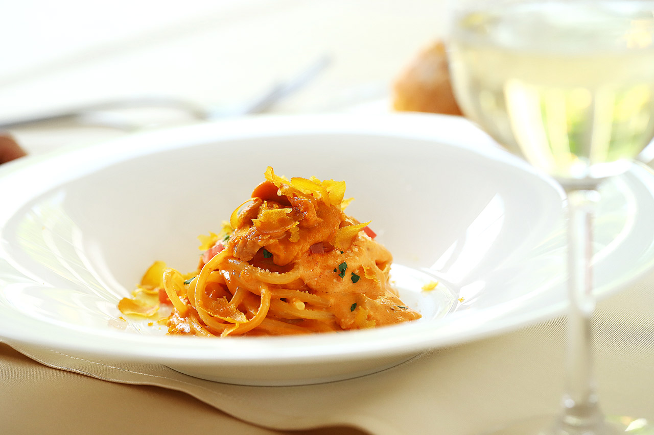 イタリアンと言えば、パスタ!ここのパスタはメインにも勝る味と大評判。今宵はウニとカラスミのクリームソース。ウニのとろけるような甘みが濃厚なクリームソースと絡み、カラスミたっぷりの贅沢な大人味。
