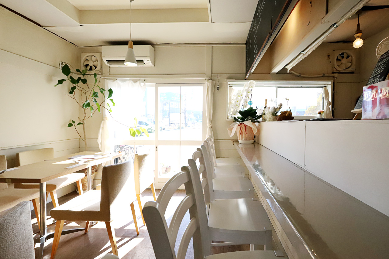1階は白を基調にした生活感溢れる空間が広がる。こじんまりとしていながらも、ゆったりとした時間が流れ、癒しのひと時を過ごせそう。