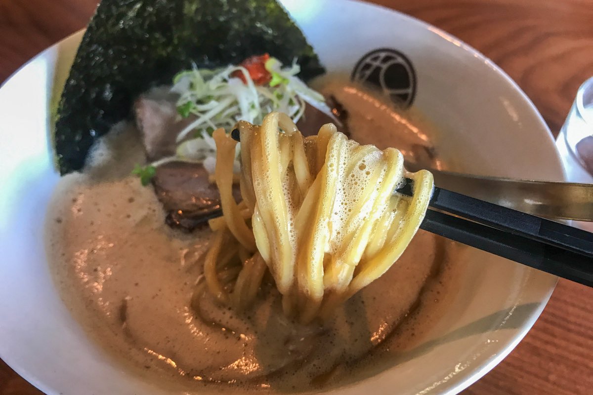 しこっとした太麺が、濃厚なコク深いスープにも負けないインパクト。