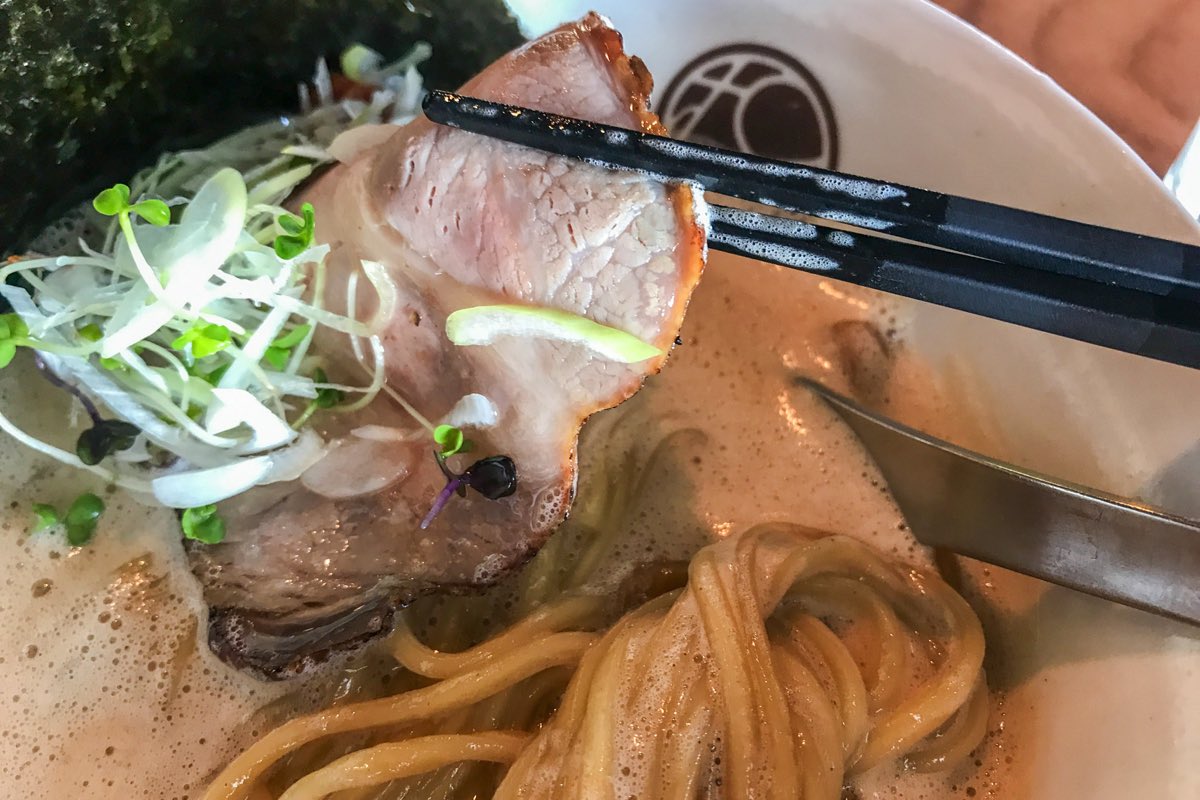 豚骨のマイルドな旨味ときりっとした醤油を凝縮したとんこつしょうゆが冴える。ネギ、三國屋有明産海苔にチャーシュー、スプラウト…と至ってシンプルなトッピングながら、無化調のスープは圧巻の美味しさだ。
