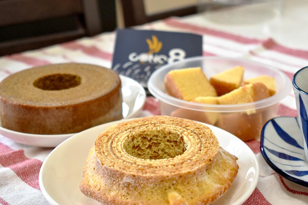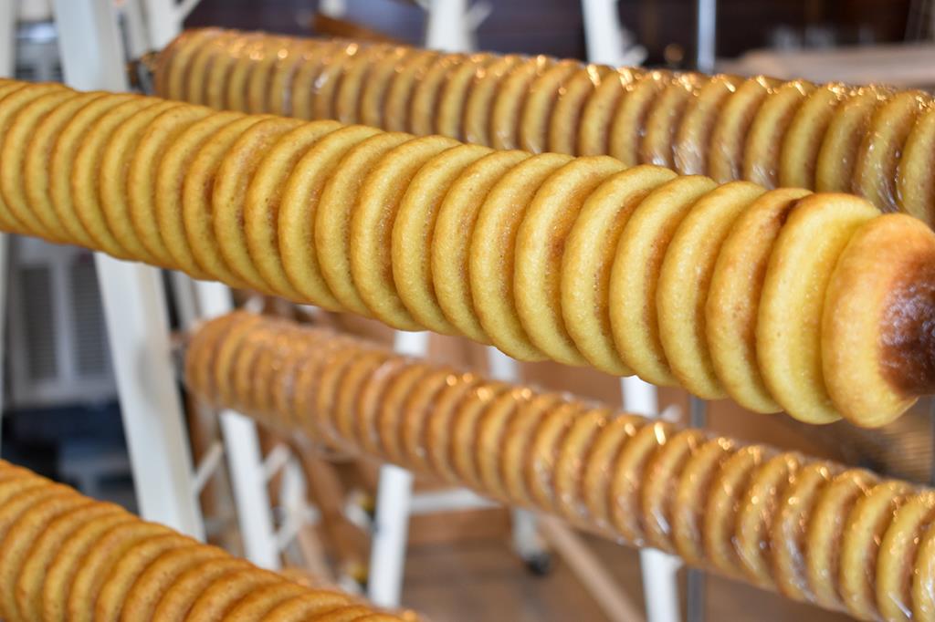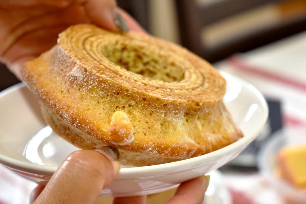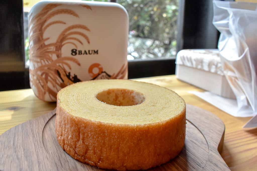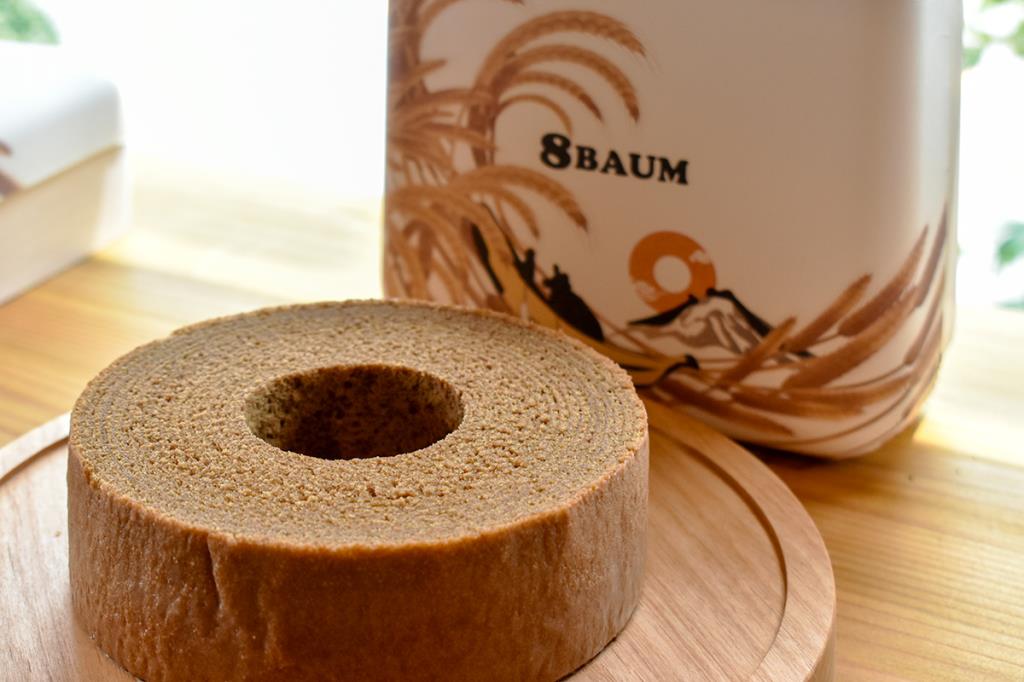 米粉と小麦粉をブレンドしているから、しっとりもっちりした食感で、甘さ控えめのやさしい味わい。一般的なバウムクーヘンよりもひと回り小さめで、食べたいその日その時にちょうど食べきれるサイズ感もいい。