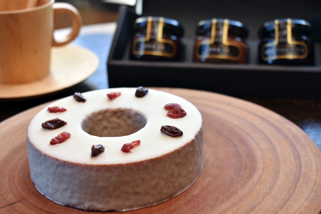 ホワイトチョコレートでコーティング、赤ワインとグラッパに漬け込んだドライフルーツをあしらい、冬のご褒美ケーキへと進化を遂げたワインバウム…。