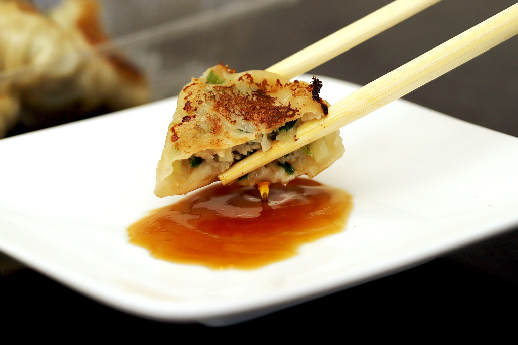 気になる皮は本当にも~ちもち!肉とキャベツのバランスが絶妙で、ジューシーとシャキシャキを行ったり来たり。ひと口でパクパク食べられる大きさだから、これは止まらない!タレをつけなくても具にしっかり味がついているので、白米ともビールとも相性◎。
