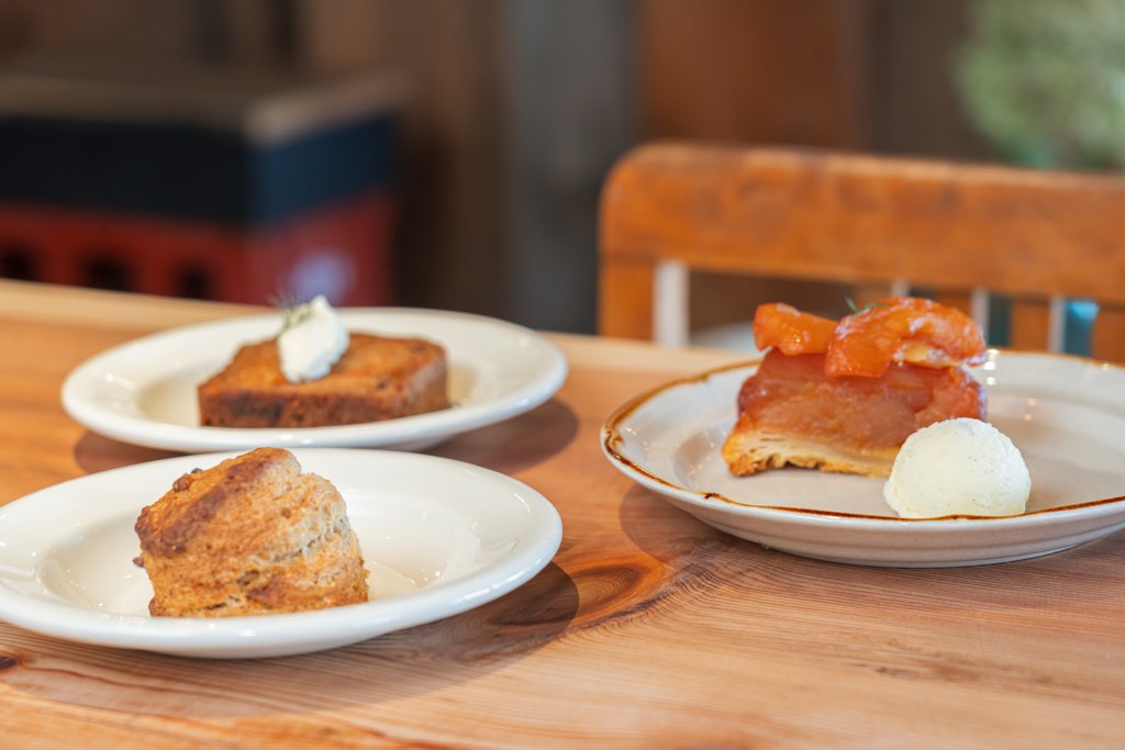 そのほか、シンプルで素朴な美味しさに溢れる全粒粉入りのざくざくスコーンや、長坂のいとう農園の無農薬人参をたっぷり使ったシナモン香るパウンドケーキなど、毎日食べたくなる焼き菓子が並ぶ。