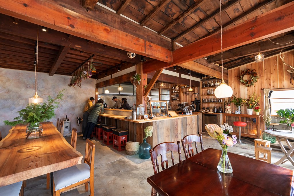 1日中どんな時間帯でも軽食やコーヒーを楽しめる、世代を超えて誰もが気軽にふらりと立ち寄れる里山の喫茶店で、四季折々の時を紡いでみては。