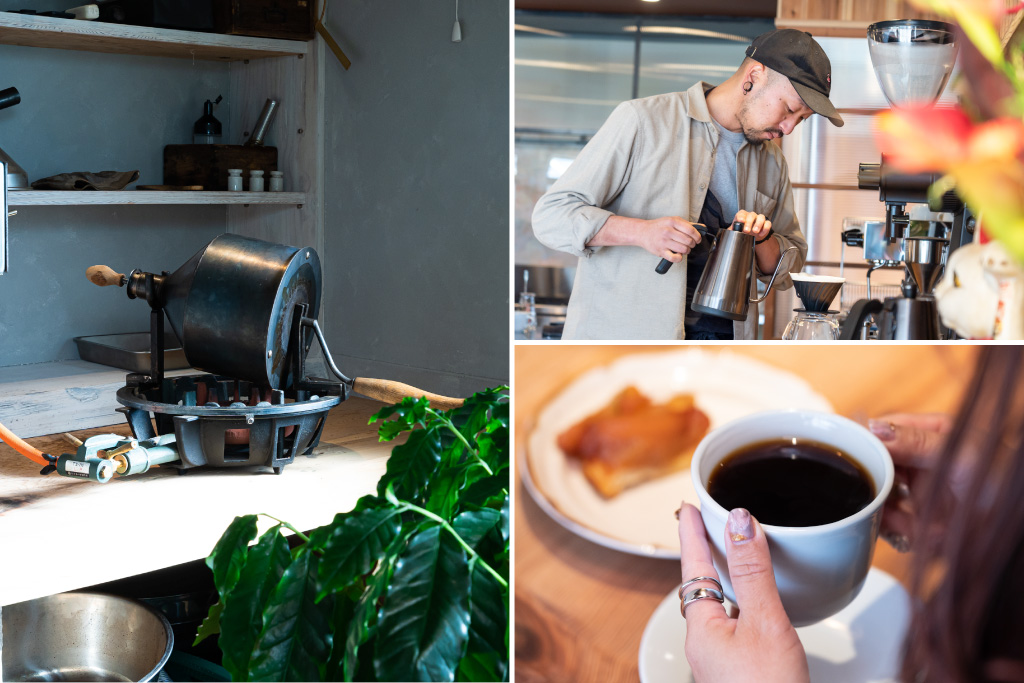 キッチンカー時代同様、鉄のドラム式手回し焙煎機で丁寧に焙煎し、ハンドドリップで淹れてくれる百木さんの美味しいコーヒーは、店舗でも健在!