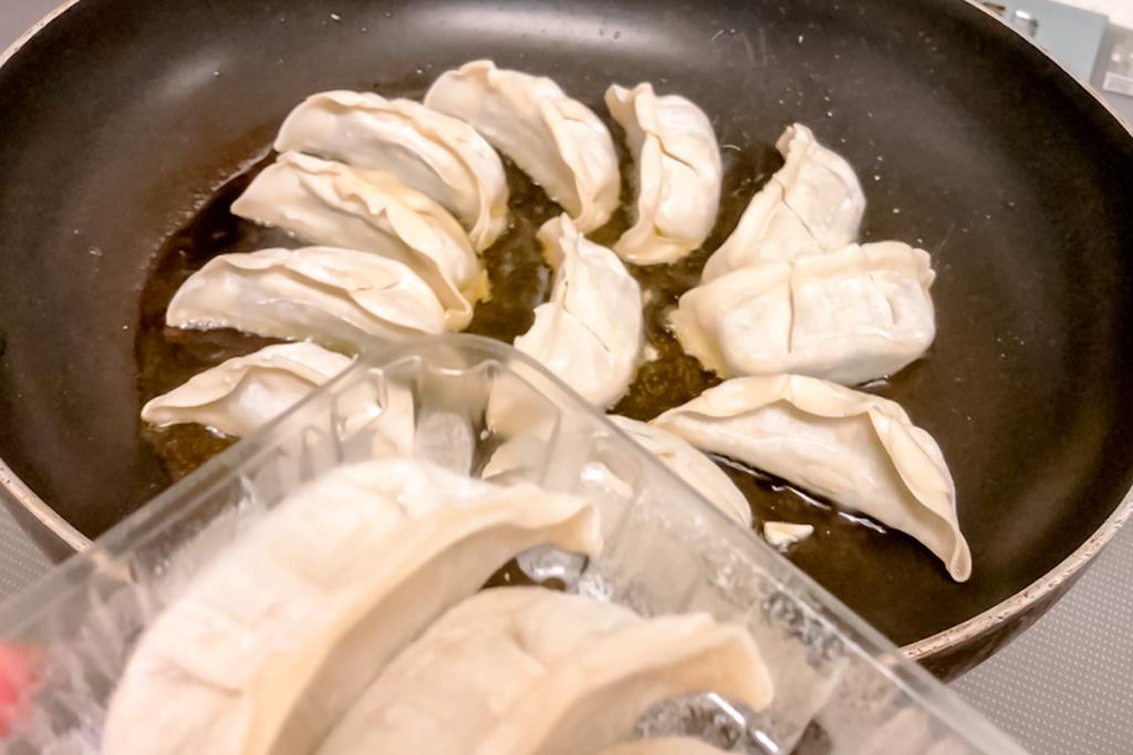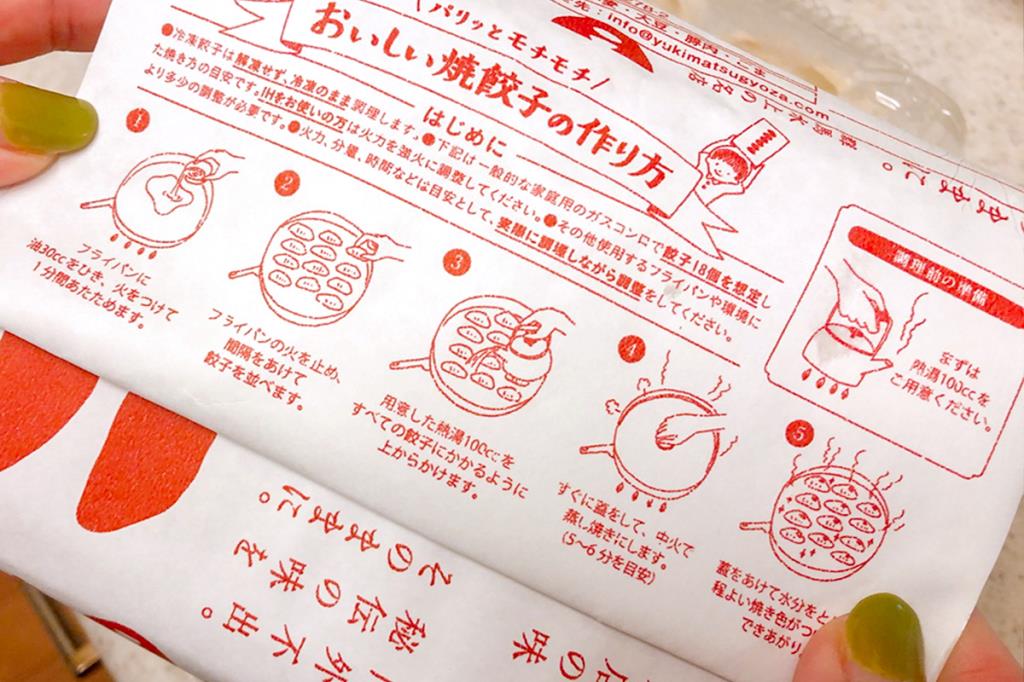 今日は餃子だよ~♪とご機嫌で早速焼いてみることに。包んでいる紙に「おいしい焼き餃子の作り方」が書いてあったので充実に再現!