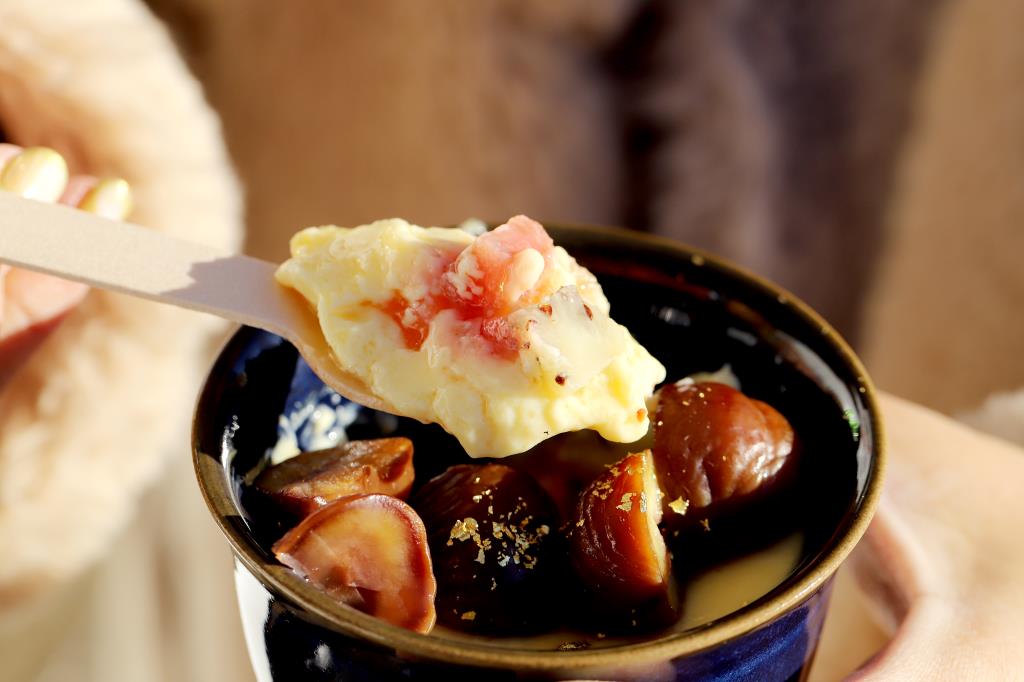 デザートには、栗の味わい豊かな「AO」を。先ほどの茶碗蒸しとはベースの味を変えているため、食べた感想は全くの別モノ。なめらかプリンみたい。