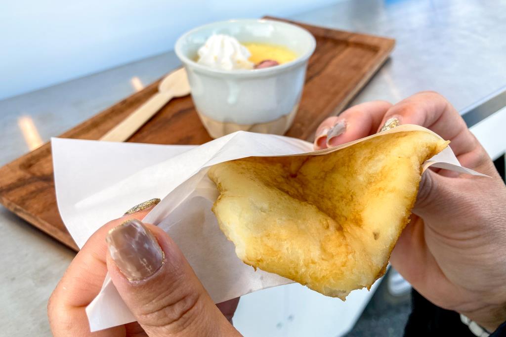 また、茶碗蒸しのほかにも、ほっこりじゃがいもチーズ(300円)を販売。ほくほく、しっとりとして食べやすく、子どもにも大人気とか。