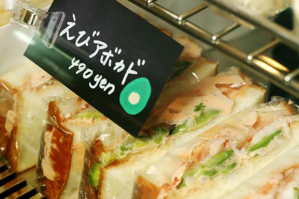 「しょっぱいのも食べたい!」意向に応え、えびアボカド(490円)やサラダチキンチーズ(450円)のほか、居酒屋時代の大人気、だしまき卵のサンド(580円)もラインナップする。