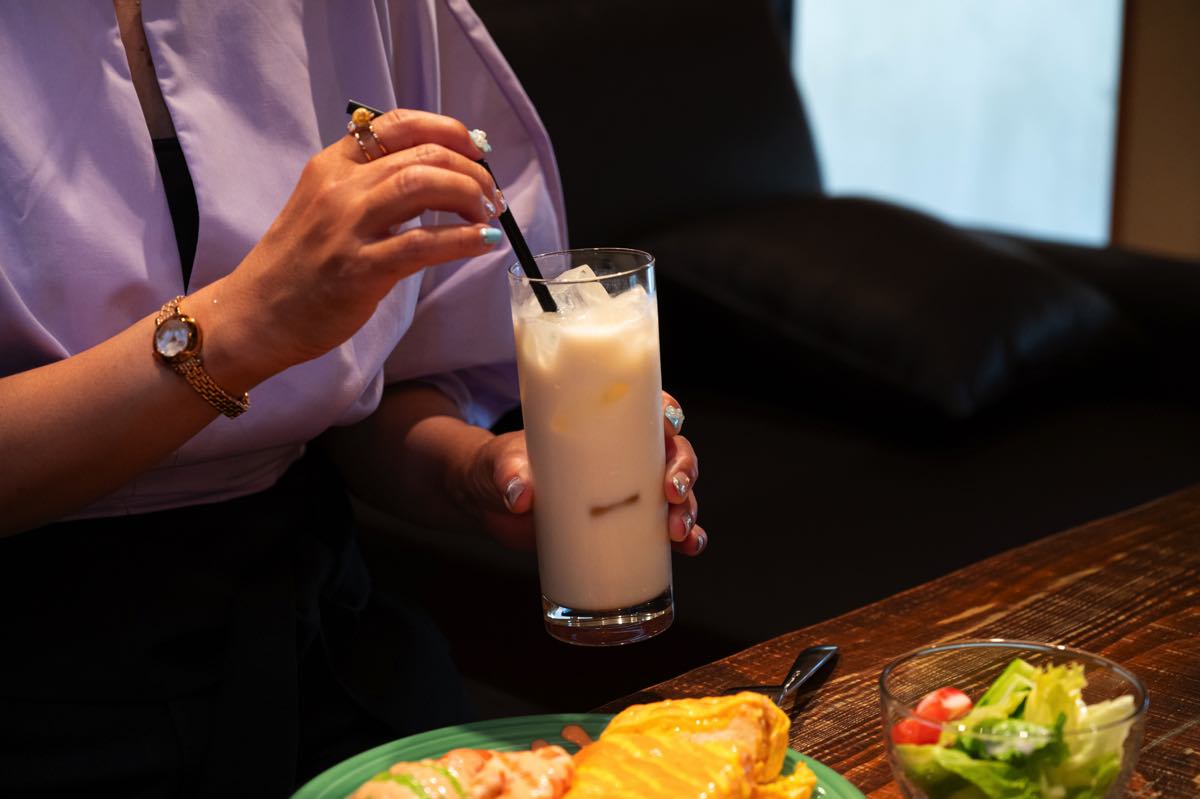 ドリンクメニューもコーヒーやフロートのほか、ラムネや白桃ソーダ、ジュースなどのソフトドリンクからアルコールまでバラエティ豊か。中でも、豆乳杏仁ラッシーは甘酸っぱいデザート感覚で楽しめるのでおすすめだ。