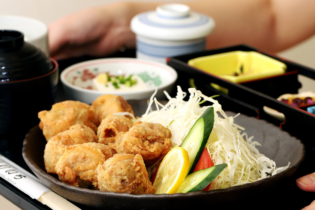 唐揚げもさることながら、付け合わせの茶碗蒸しや小鉢も滋味深い美味しさがたまらない。