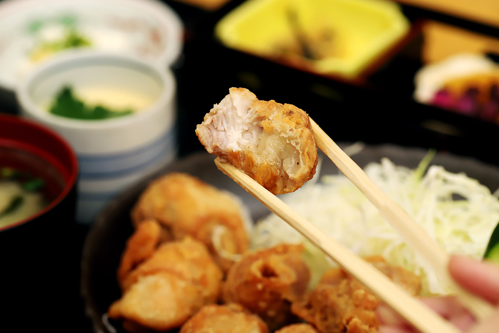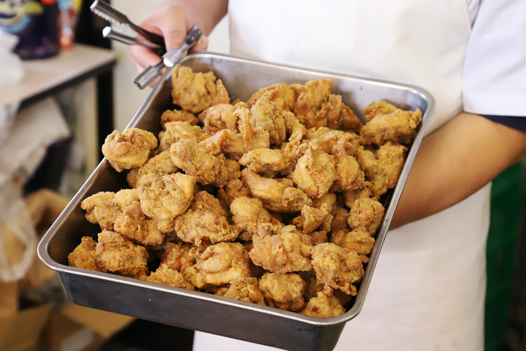 カラっと揚げられた鶏肉をひと口頬張ると、ザクザクっとした衣の中からしっとりやわらかなお肉のうま味がジュワ~っと広がる!