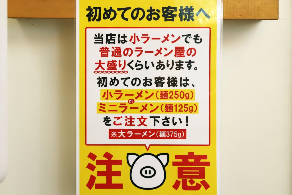 どれどれ…なんと、こちらのラーメンはどうやら量が多いらしい。ということで、小ラーメンをポチッと。ちなみに小食の人や女性はミニラーメンでも十分とのこと。