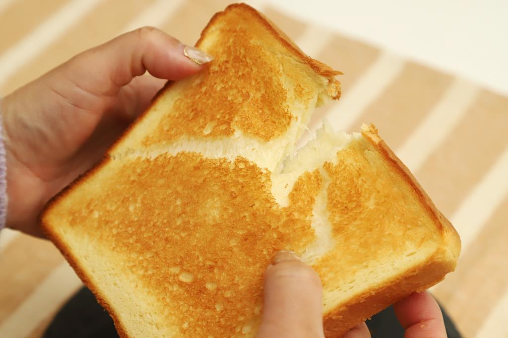 トーストしてみると、濃厚なバター感がアップ!カリッと香ばしい中に、贅沢なバターが香りたち、中はしっとりふわふわ。