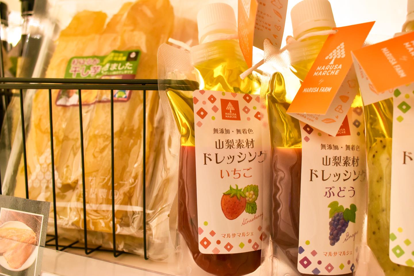 また、農園から生まれたオリジナルの加工品も販売。紅はるかで手作りした干し芋や、素材の6割が無添加のフルーツペーストという贅沢なフルーツドレッシングなどなど。