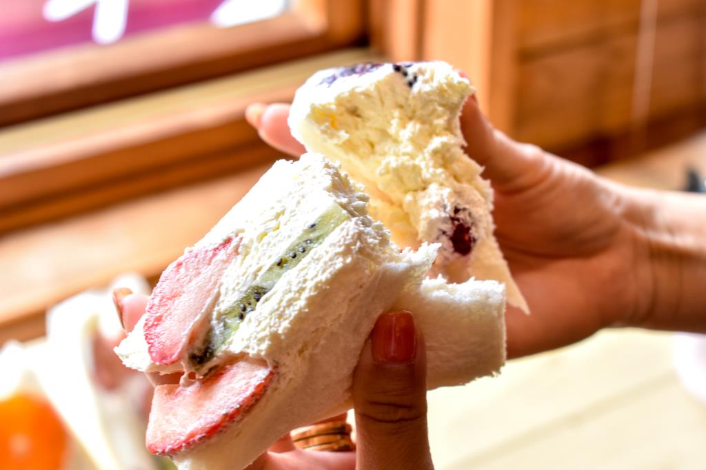 2021年2月12日のオープンから大人気の河口湖のフルーツサンド専門店「富士山フルーツサンド金藏」。10時半の開店と同時に行列ができ、あっという間に売り切れてしまうこともあるとか!