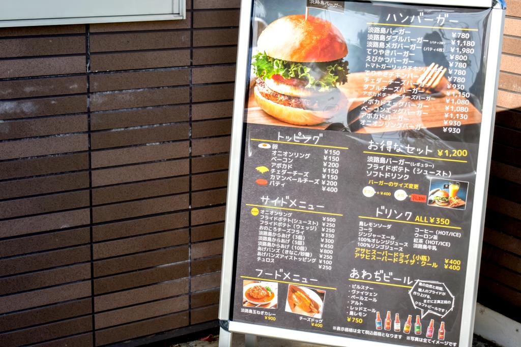 | 主なメニュー | <フード> ・淡路島バーガー 900円 ・淡路島バーガーセット(フライドポテト、ソフトドリンク付き)1,300円 ・てりやきバーガー 950円 ・てりやきチキンバーガー 950円 ・チェダーチーズバーガー 1,050円 ・アボカドチェダーバーガー 1,200円 ・淡路島玉ねぎフライカレー 950円 ・チーズドッグ 450円 <サイドメニュー> ・オニオンリング 500円 ・フライドポテト(シュースト)250円 ・フライドポテト(ウェッジ)250円 ・おのころチーズフライ 350円 ・あげバンズ(きな粉/砂糖)250円 ・あげバンズアイストッピング 100円 ・淡路島からあげ3個 300円~ <ドリンク> ・ソフトドリンク 350円 (島レモンソーダ、コーヒー、100%ジュース(オレンジ、リンゴ)、淡路島牛乳など) ・あわぢびーる 750円 (ピルスナー、ヴァイツェン、ペールエール、島レモンなど) ※全て税込 |