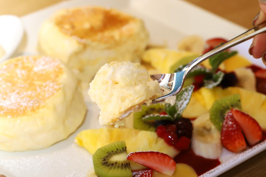 注文してからメレンゲを泡立てるというこだわりのパンケーキは、文字通りふわふわでとろとろ!