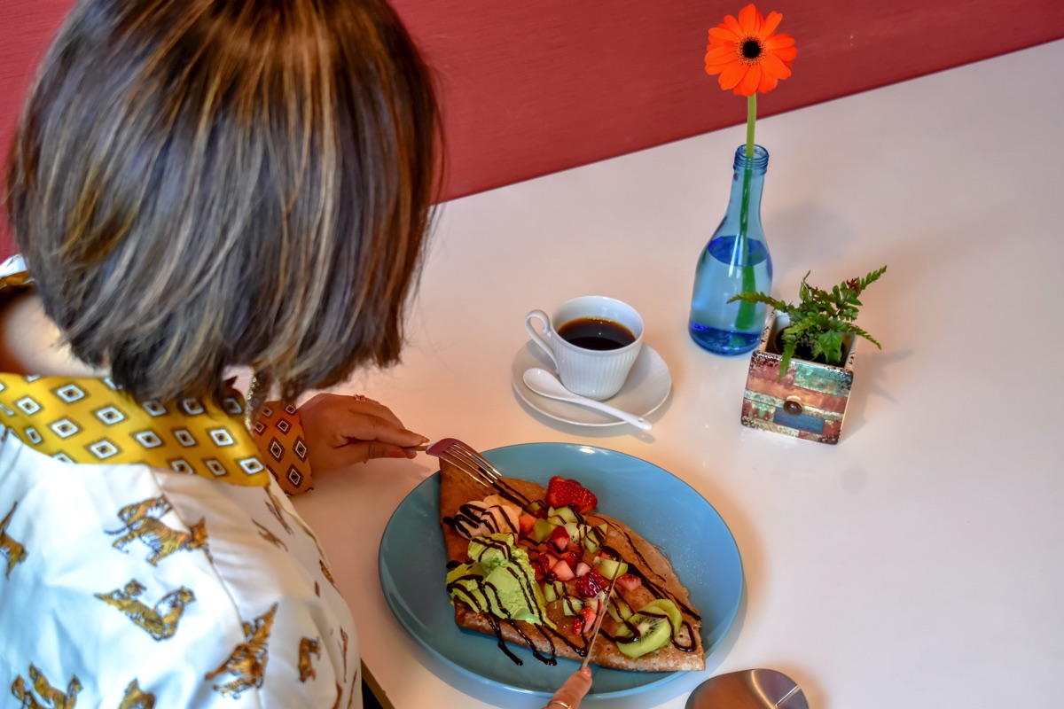 いつもの私なら絶対、お食事系のコンプレットかきのこガレットなんだけど、今日はちょっと暑かったから、フルーツガレットをオーダー。