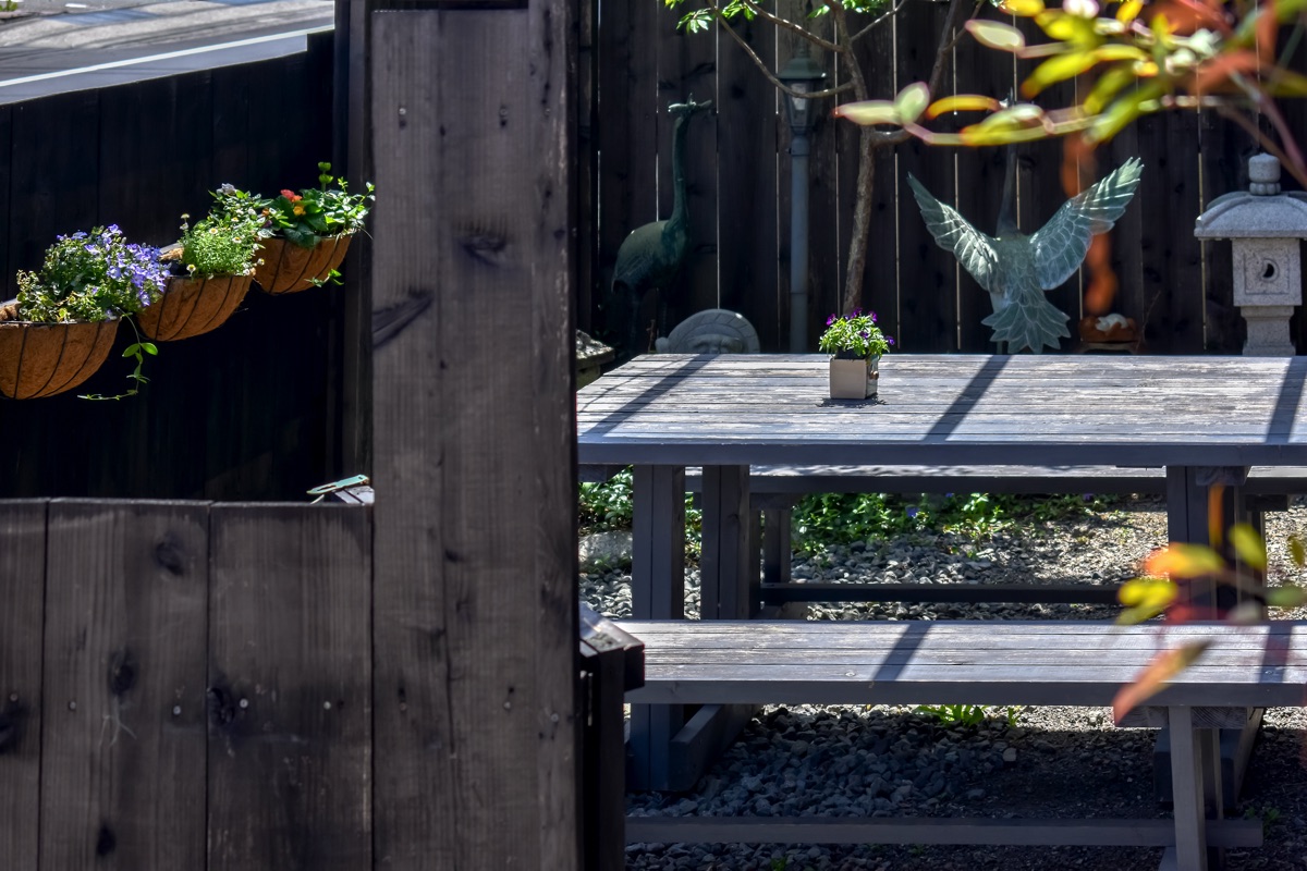 小鳥がチュンチュンとさえずり、時間を置き忘れたかのように、テラス席が緑の中でまどろんでいる。