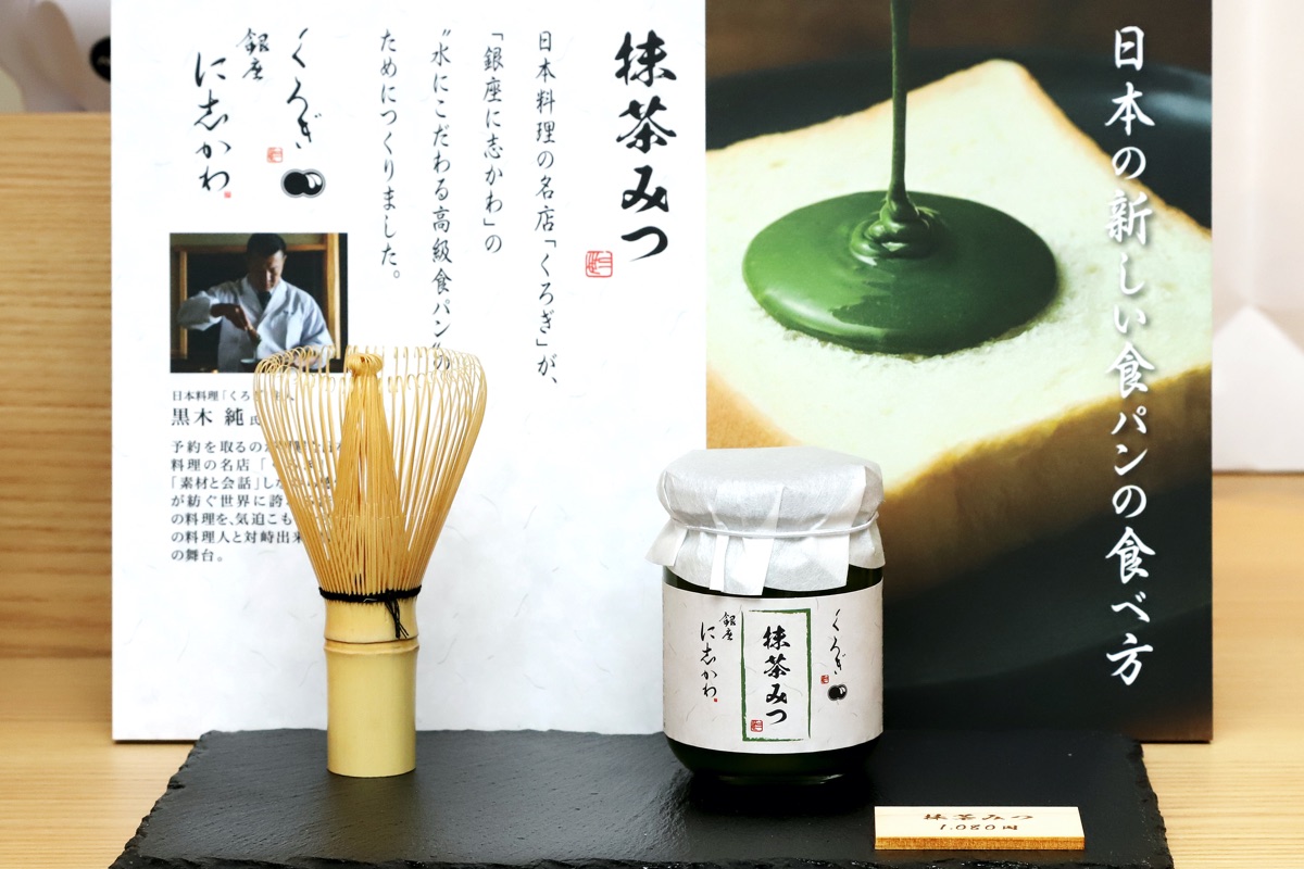 和菓子感覚で楽しむなら、ジャムのかわりに、日本料理の名店「くろぎ」と共同開発した抹茶みつ(1,080円で販売)をぜひ。
