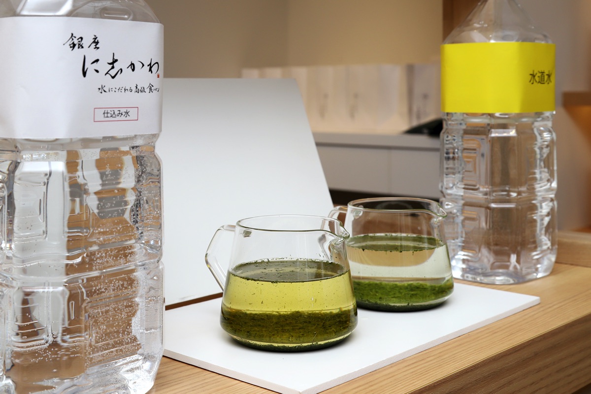 同じ茶葉で水道水と、銀座に志かわの仕込み水を比べてみると、その抽出力になんとこんなに違いが!