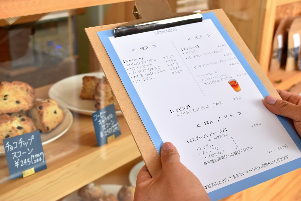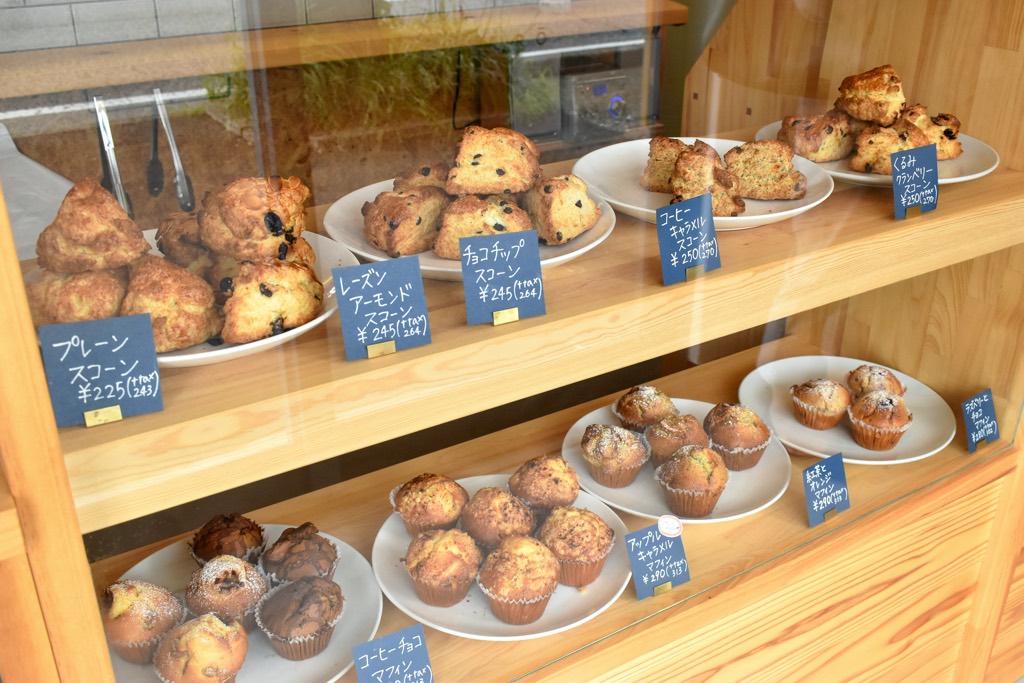 紅茶に合う焼き菓子は、マフィンとスコーン各5種類ほどが店頭並ぶ。どちらも国産小麦にこだわり、マフィンはさっぱり食べられるよう、あえて米油を使用。スコーンに使われているショートニングはオーガニック。
