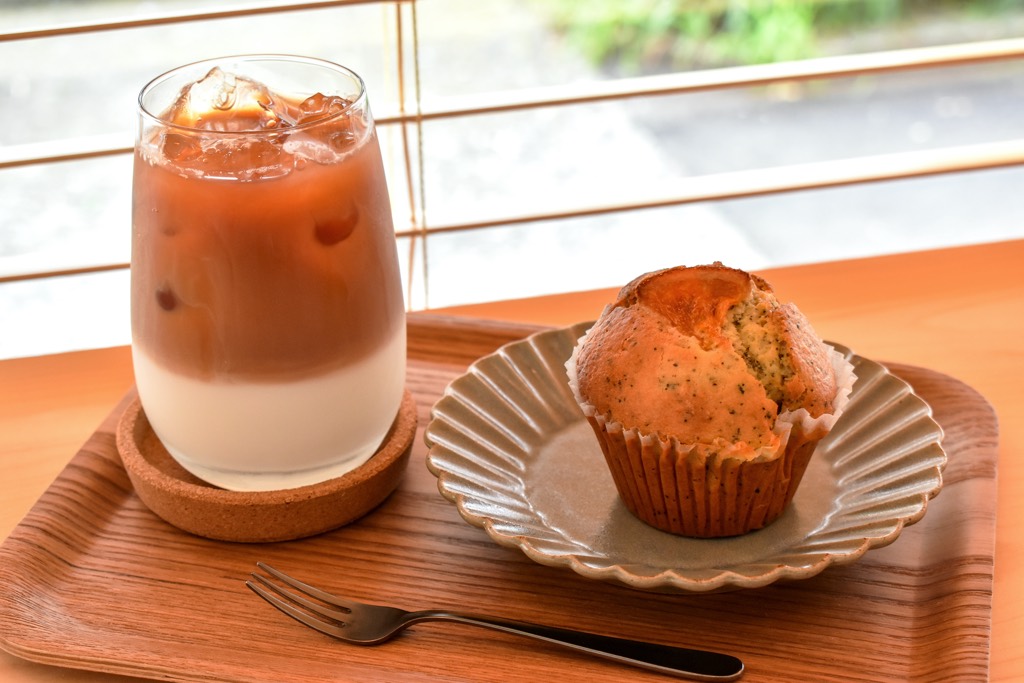 せっかく来たなら焼き菓子も楽しみたい!と「紅茶とオレンジのマフィン」もドリンクのお供に。