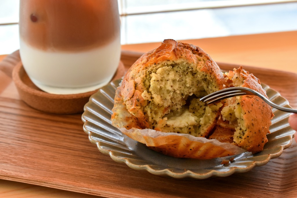 マフィンにフォークを入れると、しっかりと焼き上げられた生地の中からサワークリームと角切りのドライフルーツのオレンジが顔を覗かせ、口元に運んだだけでアールグレイの紅茶の香りが立ち上る。