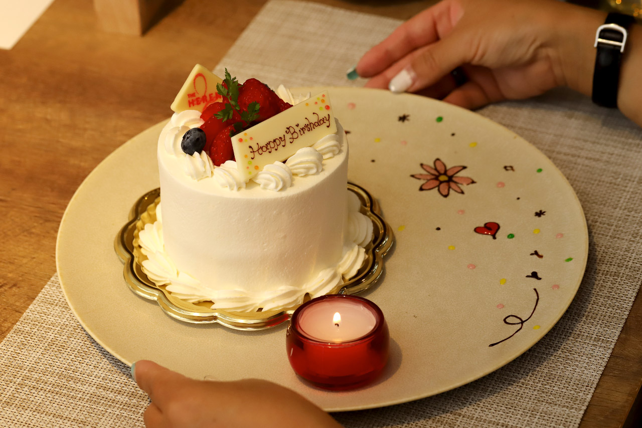 大切な夜には、コース料理に+1,650円でホールケーキ(3号)と記念写真(台紙入り)が付く「記念日特別プラン」をプラスしよう。