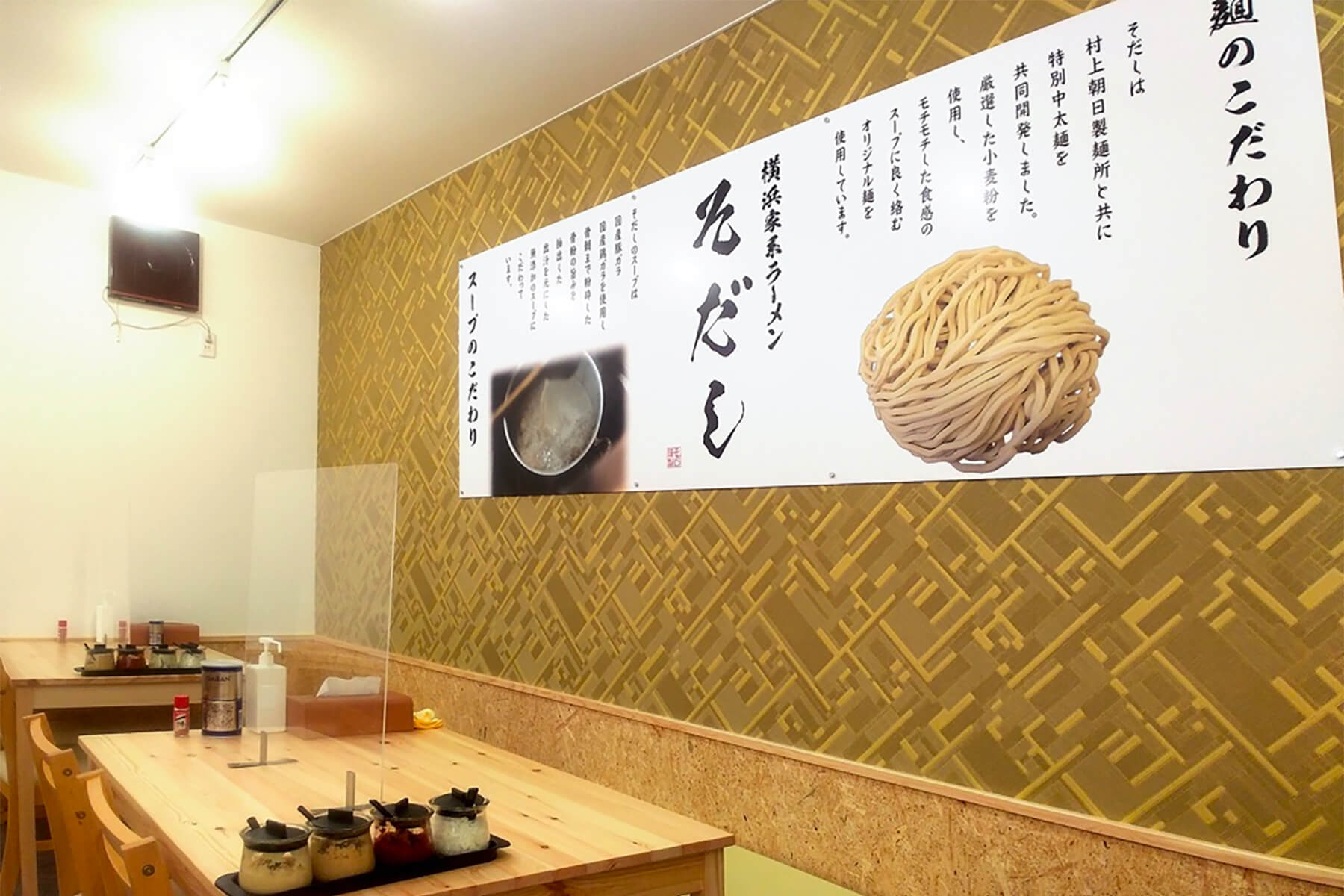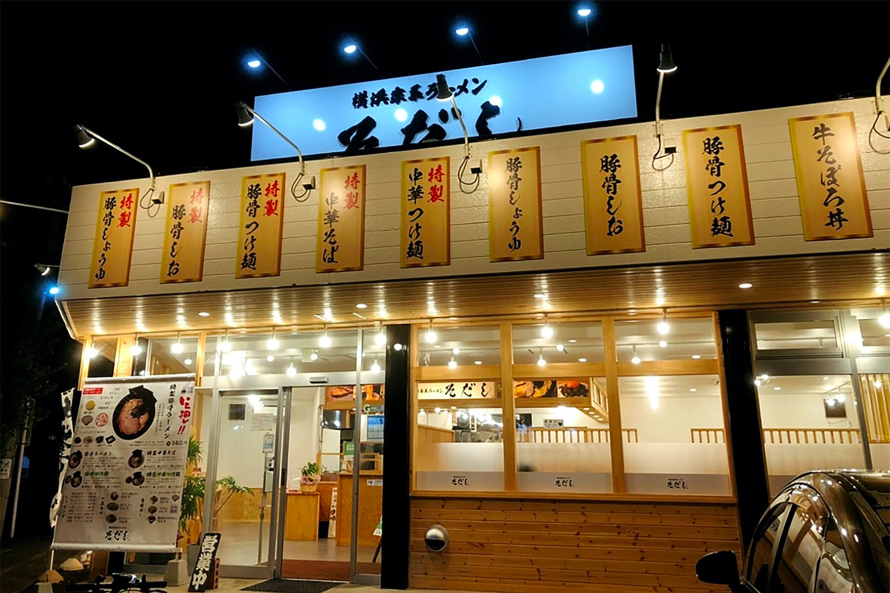 甲府市国玉町の青沼通り沿い、昼間はいつも行列ができている「横浜家系ラーメン そだし」。