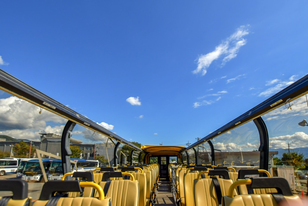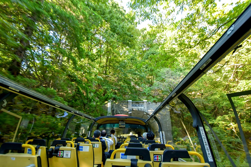高い視界と屋根のない開けた爽快感が特徴で、大自然を全身で感じられる。乗っているだけで楽しいアトラクションのような乗り心地は最高だ!