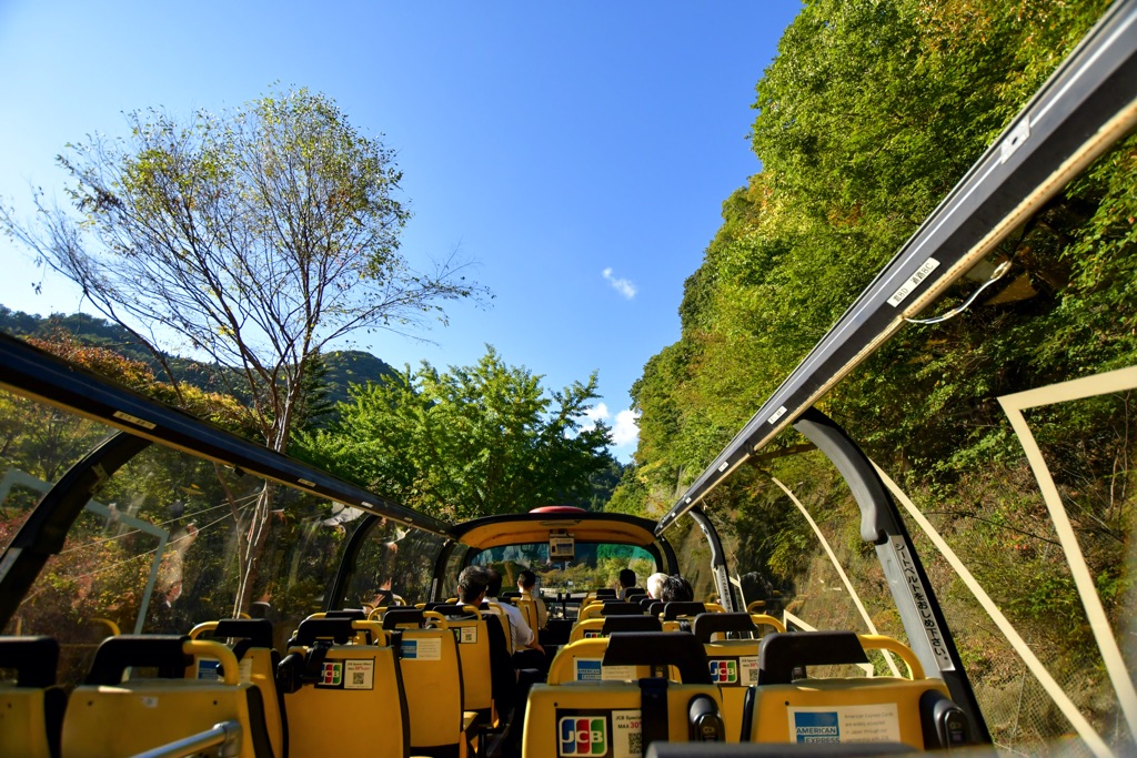 実はこれ、紅葉まっさかりの御嶽昇仙峡を周遊するツアーバス。