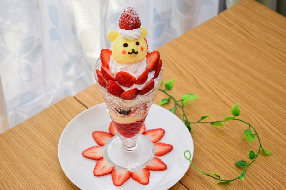 真ん中にお目見えするのはSOLATIOのアイドル、アイスのくまさん!いちごの帽子を被った可愛すぎる「くまいちごパフェ」の登場に、思わず食べるのをためらってしまうほど。くまの周りや底、下のお皿には真っ赤ないちごをたっぷりとあしらい、存分に堪能できちゃう。さらに、可愛い見た目だけでなく、中には手作りや無添加にこだわったスイーツが入っており、大人だけでなく子どもも一緒に楽しめちゃうのがSOLATIOならではの魅力だ。