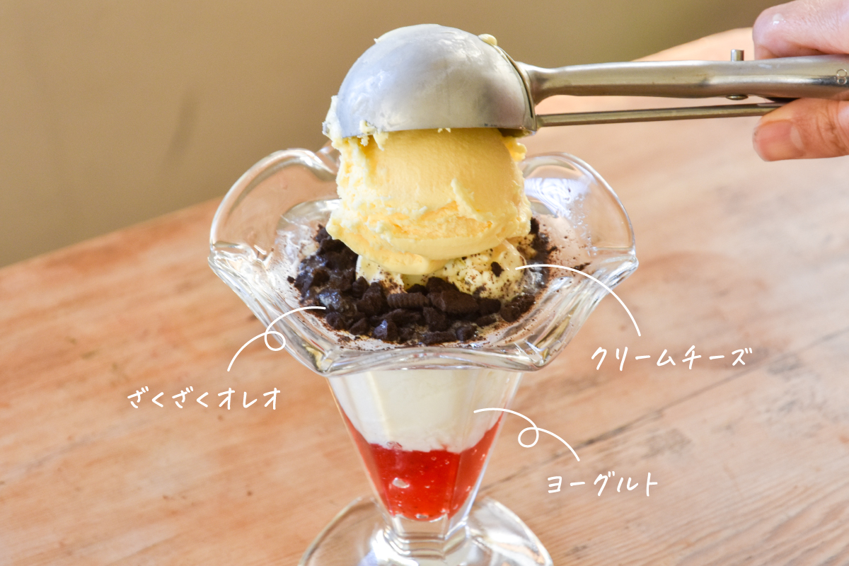 クリームチーズや無糖のヨーグルトを使用しているから、さっぱりといただけるのも嬉しいポイント!砕いたオレオは、食べ始めのザクザクとした食感、アイスや生クリームが混ざったふにゃっと柔らかい食感と2回美味しさが楽しめちゃう♪