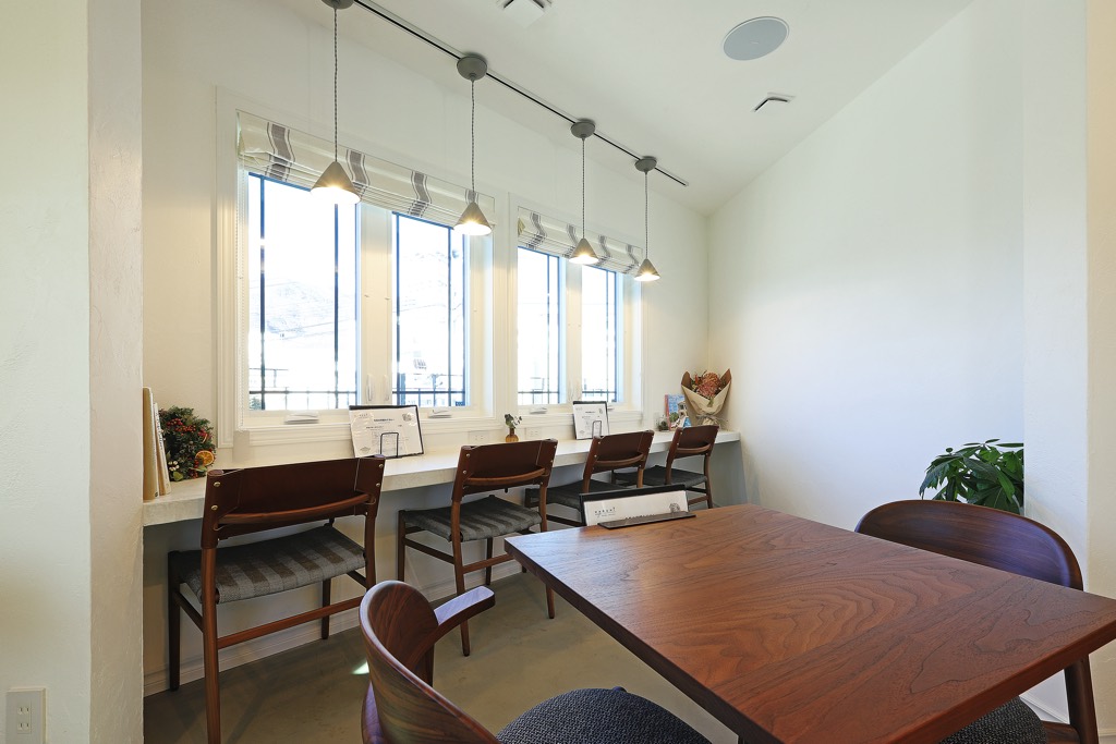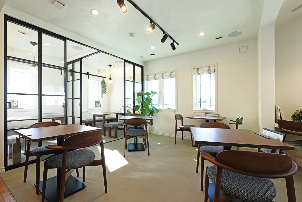 白を基調にした清潔感溢れる店内は、2人掛けのテーブル席が4つと、奥に仕切りができる4人掛けのベンチシートが2つ。窓に面したカウンター席もあり。