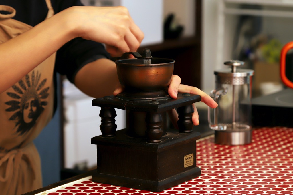 カウンター席に座り、早速コーヒーをオーダーすると、江口さんが手動で豆をゴリゴリ。コーヒー豆のいい香りが広がる。