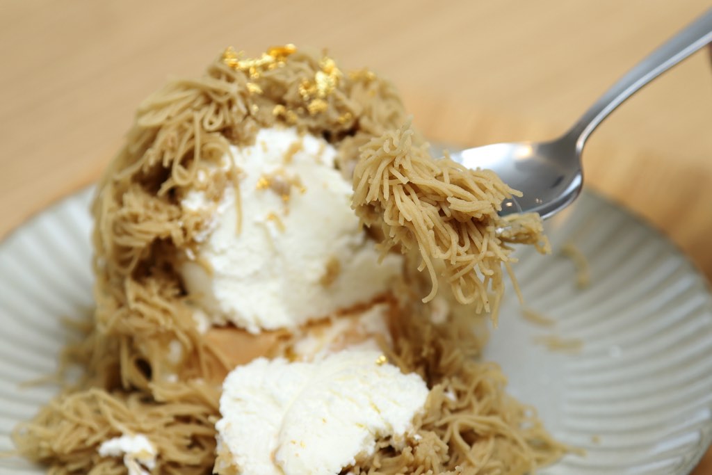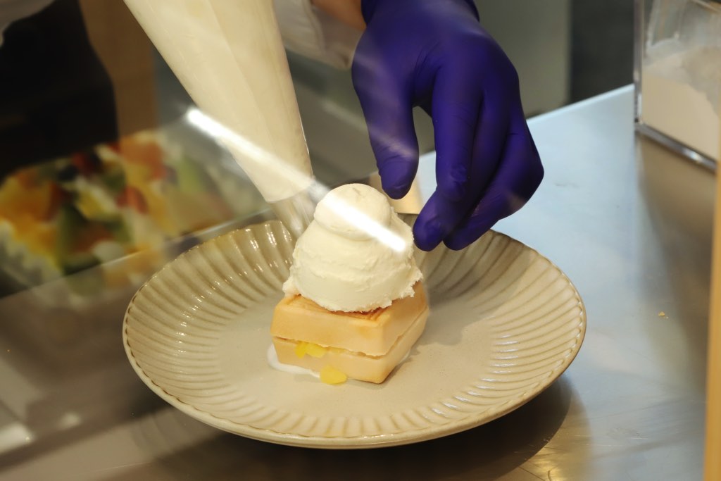 中からはまろやかなミルクジェラートと軽やかな生クリームが溢れ、まったりとした和のテイストに上品な洋菓子の華やかさをプラスする。