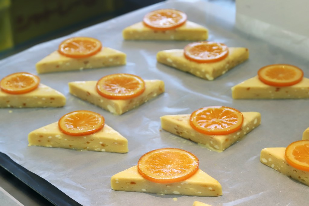 ガラス越しに見えるキッチンでは、YATSUDOKIの一番人気プレミアムアップルパイやオレンジスコーン、クッキーなどをちょうど作って焼き上げているところ。