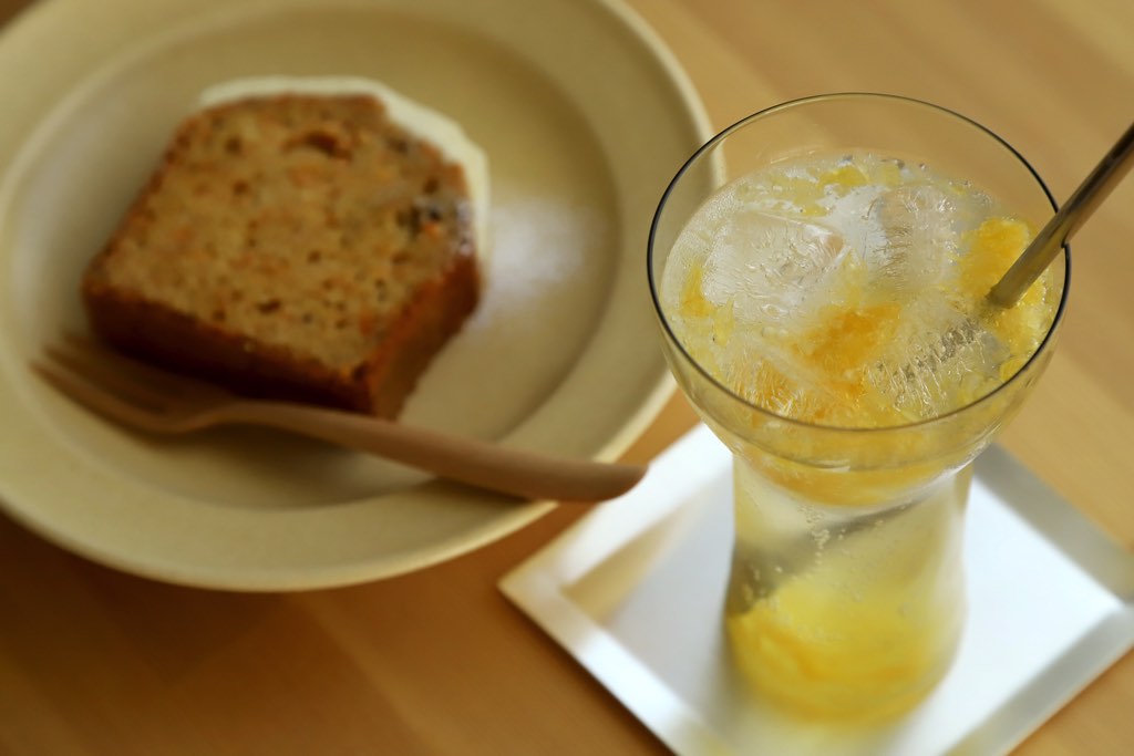 ここでは、ショップで販売する器やカトラリーで、坂本さん手作りの焼き菓子やドリンクを味わうことができるのだ。