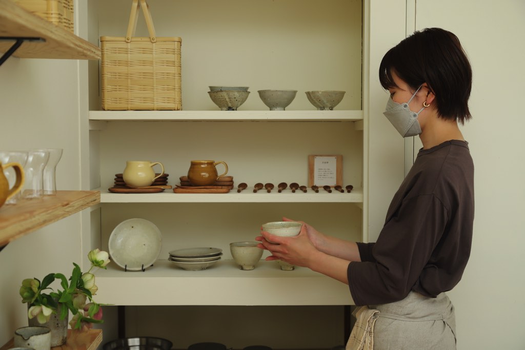 カフェを併設したのも、実際に器の使い心地や口当たり、経年変化を体感してほしいという思いから。