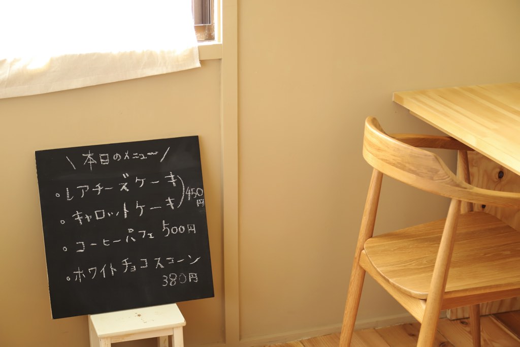 商品に添えられたメニューボードも、ここをリノベーションした時に出た廃材で手作りしたという。