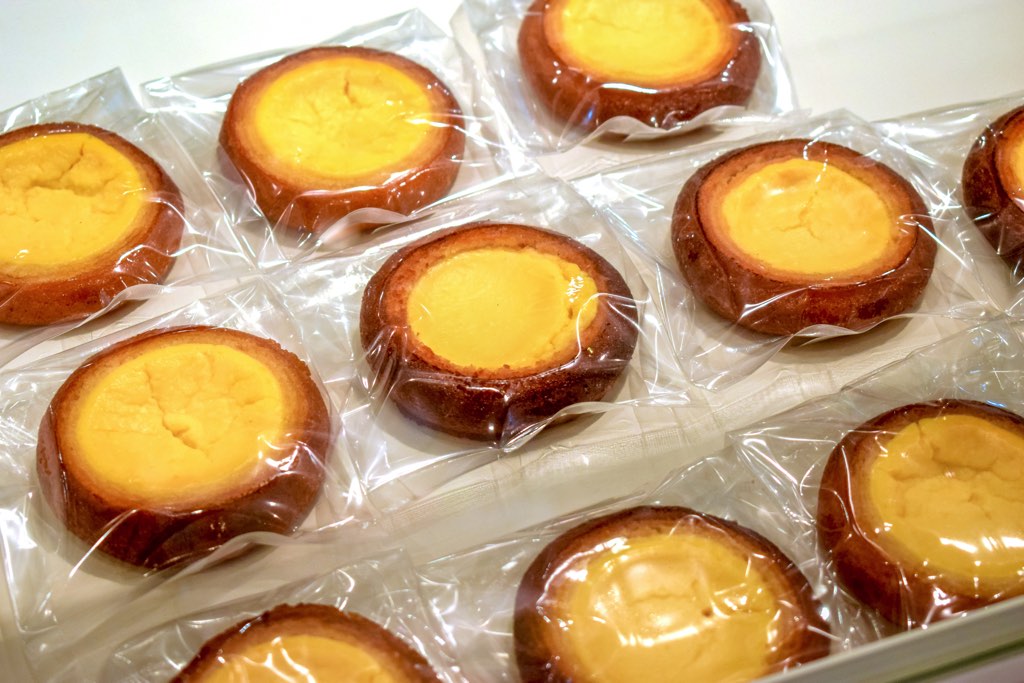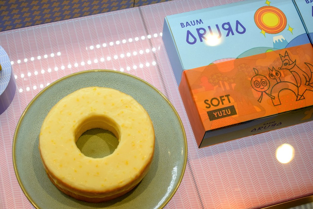 ゆず味のバウムクーヘン生地にチーズを流しこんだ、ここでしか味わえないバウムタルトの「チーズインアルラ」。濃厚なチーズとゆずの酸味が絶妙で、コクがありつつもさっぱりといただける。