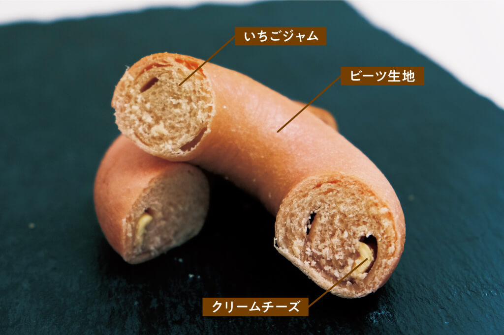 中にはいちごジャムとクリームチーズが…。