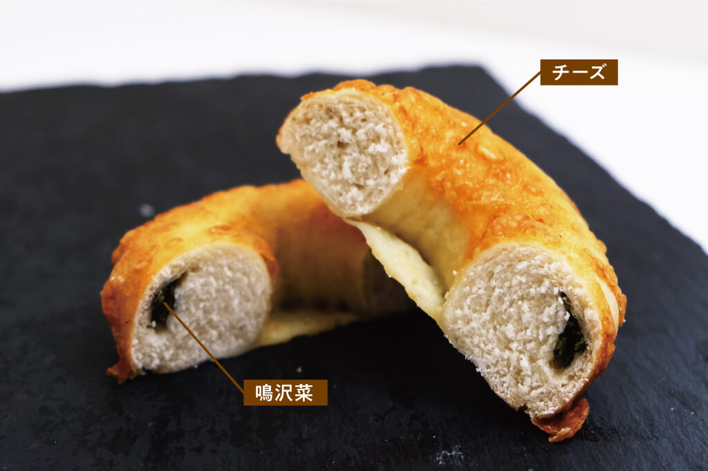 もっちりした生地にこの鳴沢菜とチーズの塩味が絶妙のハーモニーを奏でる。