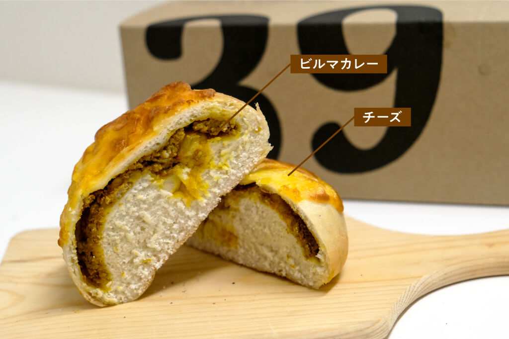 チーズカレーという食べやすい組み合わせで、スパイスのきいたビルマカレーのパンチに勝るとも劣らない、みっちりした生地がインパクト大。