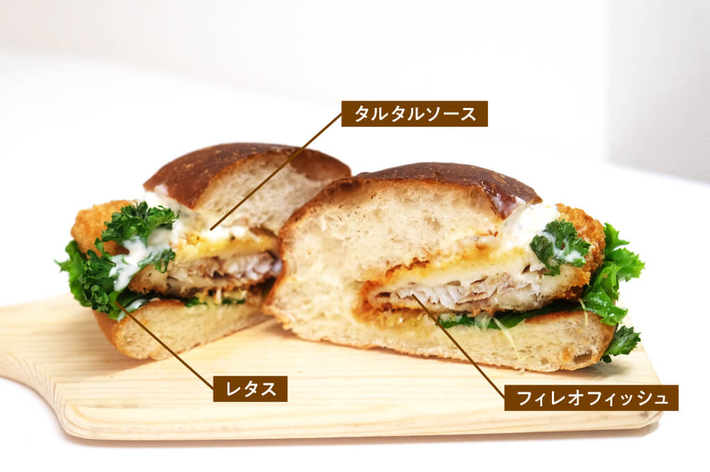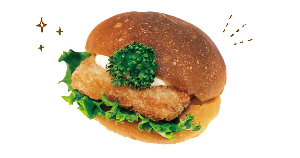 特製タルタルソースが決め手の、しっとり肉厚白身魚が美味しいお魚バーガー。