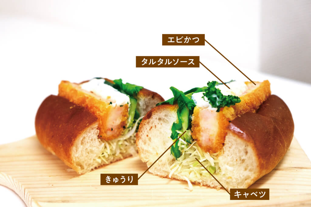 ふわふわの懐かしい味わいのエビかつコッペ。
